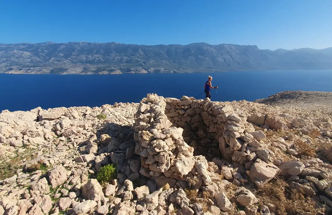 After 6 km, once you leave Vela Luka Bay, one of the most beautiful bays of the Velebit Channel where you'll definitely want to take a dip, follows a 3.5 km stretch of trail that is minimally demanding and suitable for all types of visitors: from walkers and families with children to active runners and hikers. After 1.2 km from Vela Luka, at a location called Dolac, where there's an impressive football field right in the rocky landscape, you can exit onto the road, and another kilometre down the trail, there is another entrance/exit that leads onto the road extending to Mala Luka Bay. From there, the trail continues for 2.5 km on very easy terrain until it joins the original Life on Mars route. At this point, you've covered exactly 9.5 km from the start at Žigljen and can choose to turn right, reaching Metajna after 700 m, or continue further along the Life on Mars route, choosing either a longer version of the route adding another 12 km (via Malin beach) or a shorter version cutting through at Slana Bay.